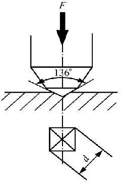 維氏硬度測量原理與布氏硬度相似。采用相對面夾角為136°金剛石正四棱錐壓頭,以規定的試驗力F壓入材料的表面,保持規定時間后卸除試驗力,用正四棱錐壓痕單位表面積上所受的平均壓力表示硬度值,標記符號為HV。