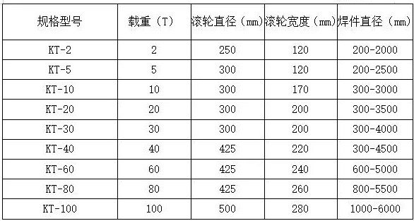 2、可調式滾輪架的中心距調節:一般情況下2噸以下采用絲桿調節、5噸以上采用螺栓分檔調節。